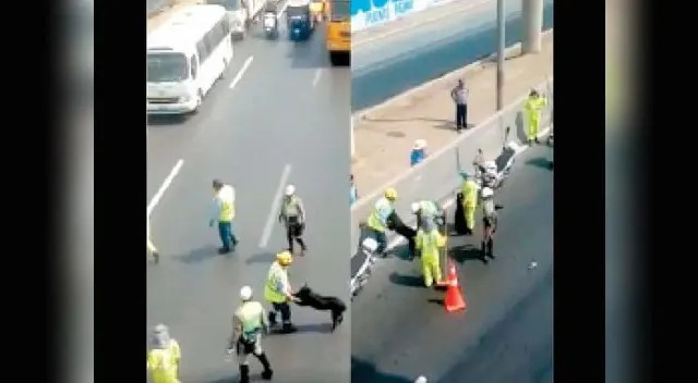 Eran las 11:30 de la mañana, cuando agentes de la Policía de Tránsito y operarios de Rutas de Lima se percataron de la presencia de la mascota.