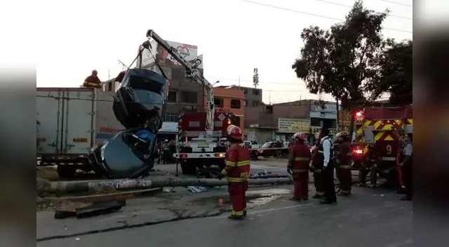 Un conductor de un automóvil falleció al impactar contra un poste e impactar contra un camión, en la cuadra 38 de la avenida Universitaria, cruce con la calle Marañón, en Los Olivos.