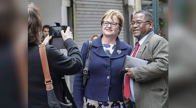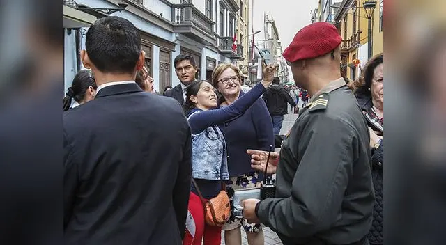 Quiere conocerlo todo. La esposa de Pedro Pablo Kucznski, Nancy Lange, no dudó en dar un paseo por Jirón de la Unión.