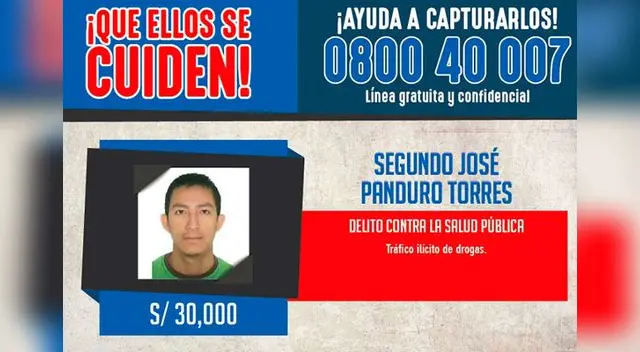 Por la captura de este sujeto, buscado por el delito de tráfico ilícito de droga, se ofrecía una recompensa de 30 mil soles.