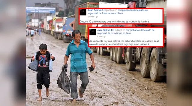 Un usuario de Facebook ha provocado indignación colectiva en las redes sociales, debido a su comentario racista en medio de la tragedia que afronta el país en medio de los huaicos, donde indicó que ofrecería 10 palomas para que los "indios no se mueran de hambre".