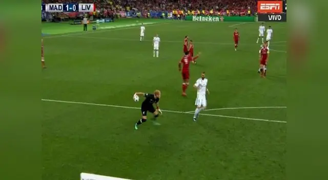 Era el comienzo del segundo tiempo, Karius iba a sacar para el equipo ingles, cuando de pronto apareció Karim Benzema para aprovechar una descoordinación con la defensa para poner con sutileza el primer tanto del partido.