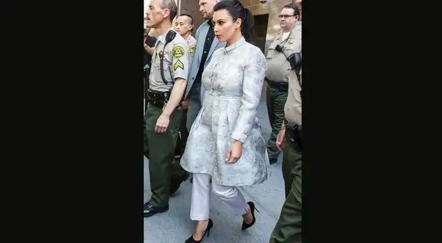 La estrella de los realities Kim Kardashian fue resguardada por diez policías a la salida de la corte por el proceso de divorcio. La artista se encontraba muy seria y no es para menos, pues su aún esposo Khris Humphries no se presentó.