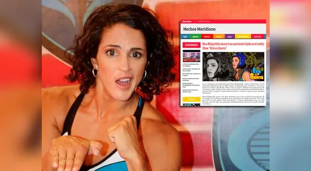 La integrante de "Esto es guerra", Kina Malpartida, acaba de ser protagonista de un hecho insólito y polémico por parte de un portal de internet.La ex-campeona mundial de box fue dada por muerta por un sitio web mejicano, que argumentó que el hecho se produjo tras una caída de Kina en el reality.Según una nota publicada en el portal 'hechosmeridiano', Malpartida perdió la vida tras una fuerte caída en una grabación de "Esto es guerra"."(...) Luego de la terrible caída que le provocó la formación de coágulos de sangre en el cerebro, Kina fue sacada del set en brazos de su compañero Yaco Eskenazi, quien la cargo hasta la ambulancia que la trasladaría al nosocomio".No contento con ello, el sitio web aseguró que "una vez en el hospital, Kina 'La Dinamita' Malpartida, sufrió un paro respiratorio y entró en coma, estado en el que duró hasta hoy (ayer) que perdió la vida".Como si eso no fuera suficiente, el portal mejicano atribuyó supuestas declaraciones a los conductores del programa, lamentando la "muerte" de Kina."Los conductores del famoso programa peruano (lugar en donde ocurrió el lamentable suceso), Johanna San Miguel y Mathías Brivio, durante una breve entrevista concedida a un programa de la misma televisora, manifestaron sentirse conmocionados con la noticia"Aún no podemos creer lo sucedido. Es increíble como de un momento para otro pueden suceder cosas tan fatales como este evento, hoy estamos y mañana quien sabe"."'Kina fue definitivamente una guerrera, no solo en el programa sino también en su vida personal. Kina nos regalo hermosos momentos, era una persona ejemplar, no lo puedo creer…', señaló la conductora entre risas de nerviosismo y llanto", según el portal.