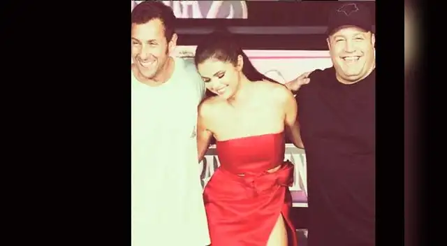 Selena aparece con un jean roto y echada en un piso oscuro, mientras que en la otra imagen solo lleva puesto una polera mostrando sus contorneadas piernas sentada en una silla.