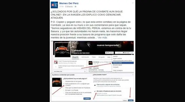 Los usuarios hicieron presentes sus dudas y una página “Memes del Perú” ha difundido imágenes donde pide a sus seguidores “reportar” al fanpage por el bienestar de la sociedad.