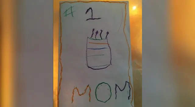La esposa de Jay-Z compartió en las redes sociales el obsequio de su pequeña. En la fotografía se observa una tierna tarjeta hecha a mano que se lee en inglés "Mamá #1" con un dibujo de una torta.