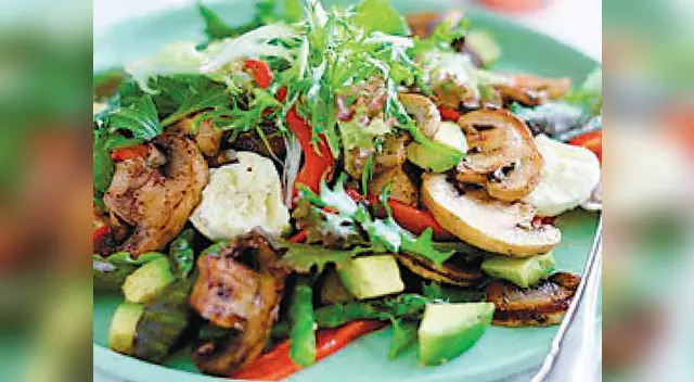 150 gr de champiñones en láminas.200 gr de queso parmesano en láminas.1 cebolla en láminas.1/2 lechuga en trozos.1 tallo de apio picado.1 cda. aceite de oliva virgen.1 limón.Sal.