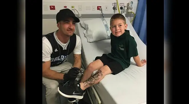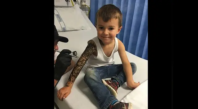 Pero esta conmovedora historia inició cuando el artista , que vive en Nueva Zelanda, posteó una foto en Facebook que mostraba al hijo de un amigo con recientes tatuajes que él le había diseñado y como leyenda de foto decía: “si consigo 50 me gusta, iré al hospital a tatuar a más niños”.