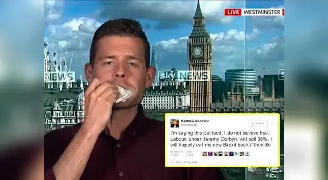 Un profesor de ciencias políticas de la Universidad de Kent, tuvo que comerse su propio libro luego de perder una apuesta en las recientes elecciones británicas sobre el Brexit. Este curioso hecho fue publicado a través de YouTube.