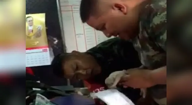 Un vídeo en Facebook mostró a un soldado tailandés que es considerado un héroe en las redes sociales al darle respiración boca a boca a un cachorro para salvarle la vida.