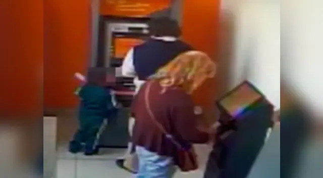 En el video se puede apreciar como el menor primero intenta quitarle su dinero a una mujer que se acerca a uno de los cajeros automáticos del banco. Sin embargo se le es complicado y la fémina lo aleja, luego el niño centra su atención en la máquina vecina donde se encontraba un hombre bien vestido.