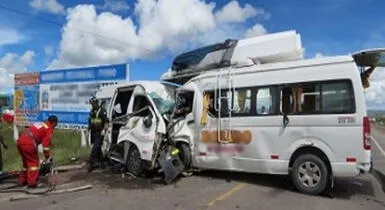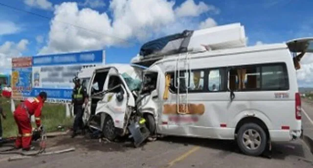 Un triple choque que involucró a un minibús y dos combis, dejó al menos 12 muertos y 15 heridos, a la altura del kilómetro 45 de la carretera Juliaca-Huancané, en el departamento de Puno, al promediar las 06:00 horas de hoy, informaron autoridades policiales.La policía de Carreteras detalló a la agencia Andina que el accidente fue protagonizado por una minibús de pasajeros perteneciente a la empresa "Flash Cordillerano" que se dirigía de Juliaca hacia el distrito de Inchupalla, y dos combis que trasladaban personal de la empresa minera "La Rinconada".René Caira Huanca, fiscal de Huancané, indicó que hasta el momento han sido identificados 11 varones y una mujer entre las víctimas mortales, los mismos que ya han sido trasladados hasta la morgue central de Huancané para que se les practique la necropsia de ley.Mientras tanto, los heridos tuvieron que ser trasladados inmediatamente al hospital Lucio Aldazabal Pauca, ubicado en Huancané, abordo de unidades de la Policía de Carreteras, de la Comisaría, en ambulancias y unidades vehiculares del Cuerpo General de Bomberos de la zona.Los heridos que presentan un cuadro de mayor gravedad han sido derivados al hospital Carlos Monge Medrano, en la ciudad de Juliaca. Andina indicó que el tránsito en la zona tuvo que ser cerrado por más de 4 horas, mientras que la policía de Carreteras abrió el paso para el desplazamiento vehicular por vías alternas.
