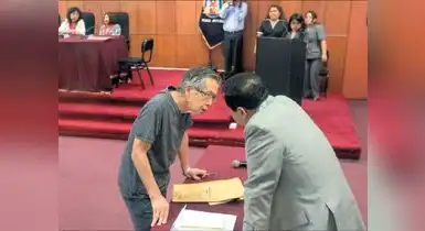 “Yo me considero inocente. No estoy conforme con la sentencia”, escribió Alberto Fujimori en un papel tras escuchar la sentencia.
