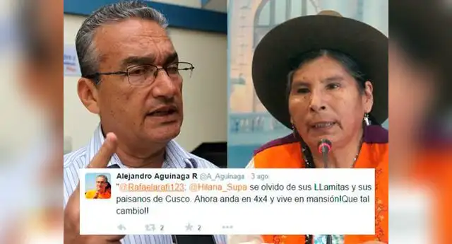 La parlamentariaHilaria Supadenunció que su colega fujimoristaAlejandro Aguinagala convirtió en blanco de un mensaje discriminatorio y racista en la red social Twitter.