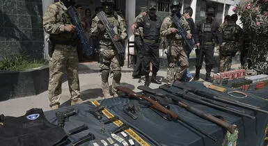 Tras la detención de las 21 personas, cinco de ellas mujeres y un menor de edad se les incautó escopetas con mira telescópicas, carabinas, revólveres, pistolas, cartuchos de dinamita, chalecos de serenazgo y de la Policía.