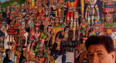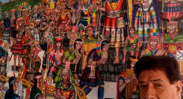 Pintor cusqueño, Gregorio Villena, autor de doscuadrosal óleo que muestran pasajes de la cultura Inca, quiere mostrar personalmente al presidente ruso Vladímir Putin su arte en el MundialRusia 2018.