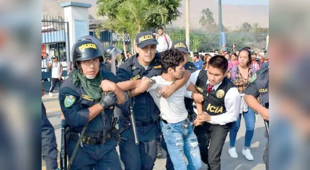 La manifestación se descontroló y los estudiantes terminaron enfrentándose con los policías, registrándose unos nueve detenidos que permanecen en la comisaría de Chosica.