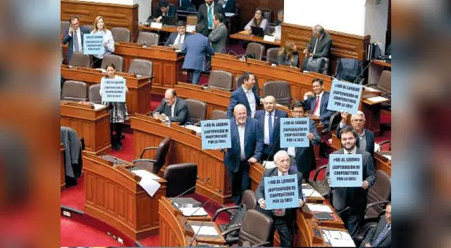 “#NoAlLavado ¡Supervisión de cooperativas por la SBS!”, se leía en las pancartas de los congresistas.