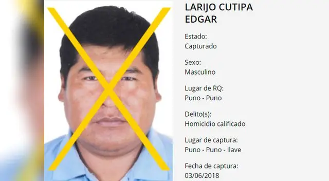 Larijo Cutipa se encontraba dentro del Programa de “Los Más Buscados” del Ministerio del Interior, por el que se ofrecía la suma de 20 mil soles.