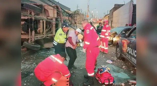 Cinco unidades de los bomberos y serenos de la municipalidad de Lima brindaron los primeros auxilios a los heridos de este accidente ocurrido en la cuadra 9 de la Av. Nicolás Dueñas.