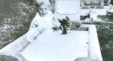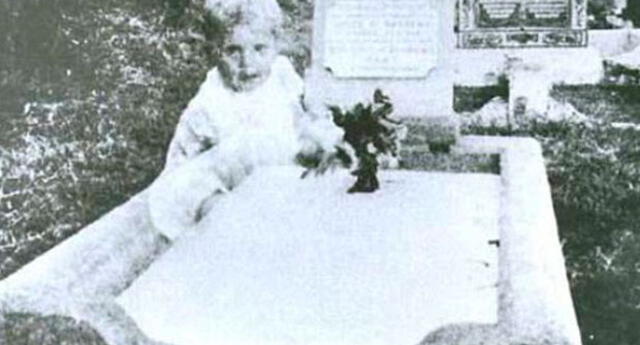 En la primera imagen tomada por la señora Andrews, mientras visitaba la tumba de su hija en Queensland, Australia, en la década de 1940. Su hijo Joyce había muerto el año anterior. Ella se sorprendió al encontrar a un niño desconocido sentado en la tumba.
