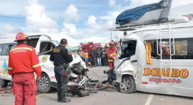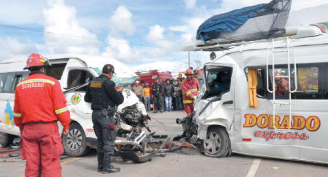 La colisión que dejó 14 fallecidos y 25 heridos ocurrió a las 2 de la tarde en el kilómetro 28 de la vía Juliaca-Puno. La combi de placa de rodaje D3V-388, de la empresa Dorado Express, impactó violentamente con otra de matrícula Z3O-950, de la empresa de transportes Fátima.