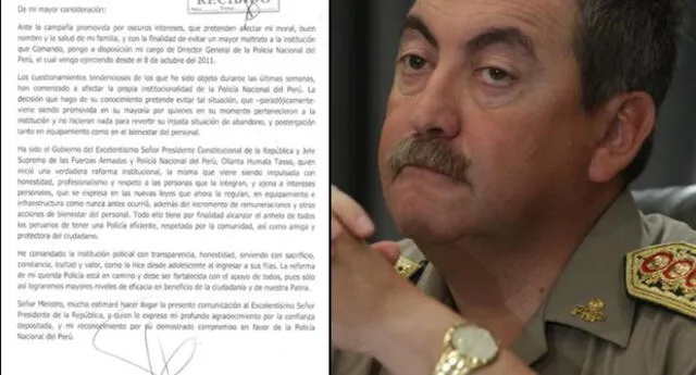 Raúl Salazar, General de la Policía Nacional del Perú, presentó anoche su carta de renuncia al Ministro del Interior Wilfredo Pedraza, luego de la ola de críticas recibida tras los últimos acontecimientos delincuenciales que pusieron en vilo al país.Entre otros motivos, la misiva, que fue enviada a los medios de comunicación, Salazar destaca que su dimisión tiene por finalidad evitar mayores daños a la imagen de la Policía y la salud de su familia.Asimismo, Raúl Salazar responsibiliza de una campaña en su contra a "quienes en su momento pertenecieron a la institución y no hicieron nada para revertir su injusta situación de abandono".Finalmente, resalta que su labor fue "con sacrificio, constancia, lealtad y valor, como lo hice desde adolescente al ingresar a sus filas", y que la reforma debe ser un trabajo en conjunto de la ciudadanía y el gobierno, en el cual destacó el papel del presidente Ollanta Humala y agradeció su confianza al nombrarlo en el cargo.Lea la carta completa:Ante la campaña promovida por oscuros intereses, que pretenden afectar mi moral, buen nombre y la salud de mi familia, y con la finalidad de evitar un mayor maltrato a la institución que comando, pongo a disposición mi cargo de Director General de la Policía Nacional del Perú, el cual vengo ejerciendo desde el 8 de octubre del 2011.Los cuestionamientos tendenciosos de los que he sido objeto durante las últimas semanas, han comenzado a afectar la propia institucionalidad de la PNP. La decisión que hago de su conocimiento pretende evitar tal situación, que —paradójicamente— viene siendo promovida en su mayoría por quienes en su momento pertenecieron a la institución y no hicieron nada para revertir su injusta situación de abandono, y postergación tanto en equipamiento como en el bienestar del personal.Ha sido el Gobierno del Excelentísimo Señor Presidente Constitucional de la República y Jefe Supremo de las Fuerzas Armadas y Policía Nacional del Perú, Ollanta Humala Tasso, quien inició una verdadera reforma institucional, la misma que viene siendo impulsada con honestidad, profesionalismo y respeto a las personas que la integran y ajena a intereses personales, que se expresa en las nuevas leyes que ahora la regulan, en equipamiento e infraestructura como nunca antes ocurrió, además del incremento de remuneraciones y otras acciones de bienestar personal. Todo ello tiene por finalidad alcanzar el anhelo de todos los peruanos de tener una Policía eficiente, respetada por la comunidad, así como amiga y protectora del ciudadano.He comandado la institución policial con transparencia, honestidad, sirviendo con sacrificio, constancia, lealtad y valor, como lo hice desde adolescente al ingresar a sus filas. La reforma de mi querida Policía está en camino y debe ser fortalecida con el apoyo de todos, pues sólo así lograremos mayores niveles de eficacia en beneficio de la ciudadanía y de nuestra Patria.Señor Ministro, mucho estimaré hacer llegar la presente comunicación al Excelentísimo Señor Presidente de la República, a quien le expreso mi profundo agradecimiento por la confianza depositada y mi reconocimiento por su demostrado compromiso en favor de la Policía Nacional del Perú.