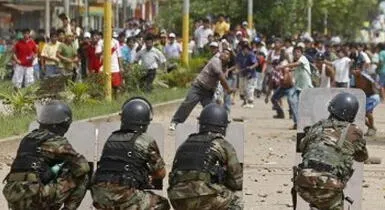 El violento desalojo de un grupo de mineros informales en el departamento de La Libertad, dejó como saldo dos trabajadores fallecidos, producto del intercambio de fuego con la Policía Nacional.Las víctimas laboraban en el socavón La Bonita, ubicada en el área de la concesión minera del Consorcio Minero Horizonte, en la localidad de Retamas, distrito de Parcoy, provincia de Pataz.Olger Fernández Pizan, quien recibió un disparo en el brazo derecho falleció cuando era trasladado a un hospital de Trujillo, informó el corresponsal de RPP Noticias en la zona. En tanto Joel Rufino Mendoza Gavidia murió en el acto.El saldo de víctimas ha provocado que centenares de mineros artesanales de la zona lleguen hasta la zona del conflicto para apoyar a los expulsados. Asimismo, se reportaron 5 agentes de la Policía Nacional y de la Dinoes heridos, mientras dispersan a los manifestantes con disparos y bombas lacrimógenas.Durante el desalojo, que se registró en plena madrugada, resultó herido Juan Goicochea Araujo y Aurelio Martínez Aspiros. Mientras que Israel Avalos Herrera y Alexander Góngora Julca fueron detenidos por los efectivos del orden.