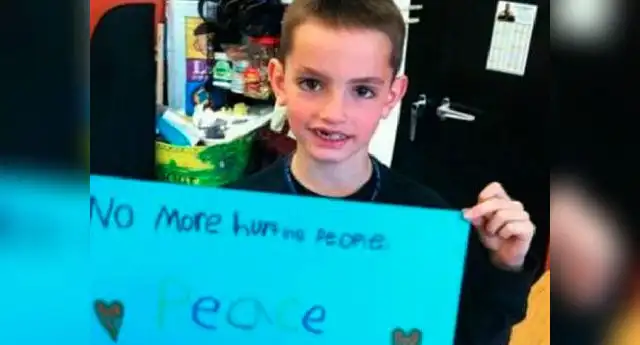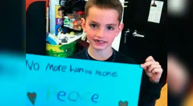 Boston. Hace casi un año Martin Richard escribió en un cartel en la escuela: “No más gente herida, paz”. La frase figura en una fotografía que se recuperó después de conocerse la muerte del niño de ocho años.