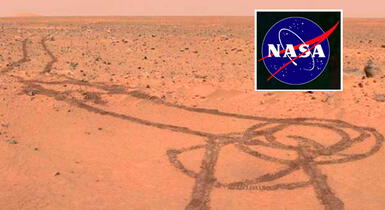 Una foto publicada por la NASA ha causado revuelo en las redes sociales. Se trata de un dibujo trazado por las ruedes de las sondas “Spirit” sobre la superficie del planeta Marte.
