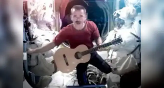 En el video se le observa tocando una guitarra mientras canta el tema de Bowie “Space Oddity” y se pasea por la EEI, y desde las ventanas se puede ver las impresionantes imágenes de la Tierra.