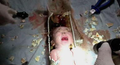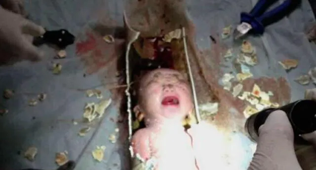 Tras verificar la peligrosidad de abrir la tubería en el lugar del suceso, llevaron el pedazo de tubo con el bebé adentro hasta el hospital, para poder sacar al pequeño que aún seguía con vida, aunque con algunos cortes en la cara y las extremidades.