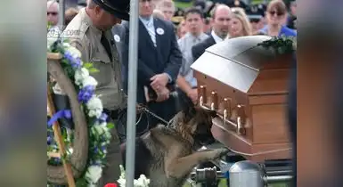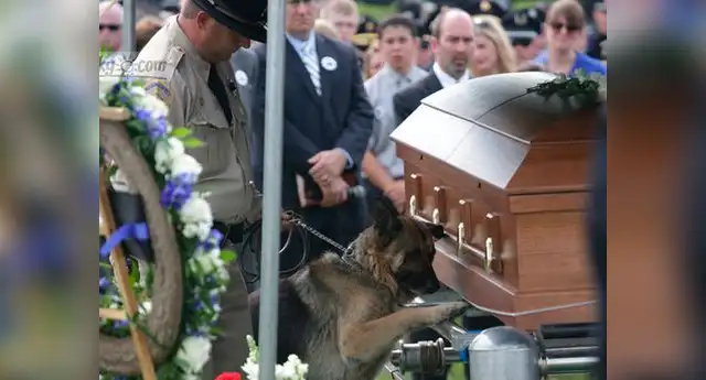 Kentucky.Una conmovedora foto tomada en el funeral de un policía en EEUU comprobó una vez más que el perro es el mejor amigo del hombre. El can se muestra dándole el último adiós a su dueño, que fue abatido durante una emboscada.