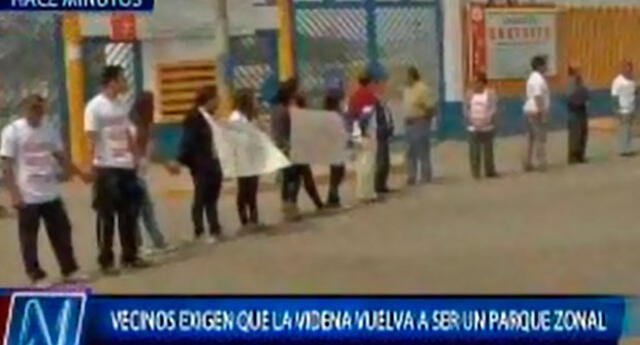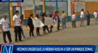 Vecinos de de San Luis junto a otros de distritos cercanos, se manifestaron durante la mañana de hoy a las afueras de de la Villa Deportiva Nacional (Videna), ya que exigen el retorno del terreno que actualmente administra el Instituto Peruano del deporte (IPD) y que antes era el parque zonal.