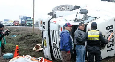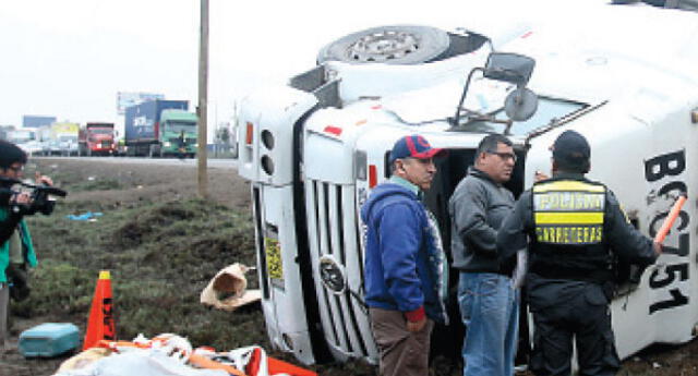 Indicó que por el choque la caseta volcó pero la carreta se quedó a mitad de la pista. El chofer del bus quiso evitar la colisión y por eso salió de la pista, estrellándose con el muro de la empresa Sinomac.