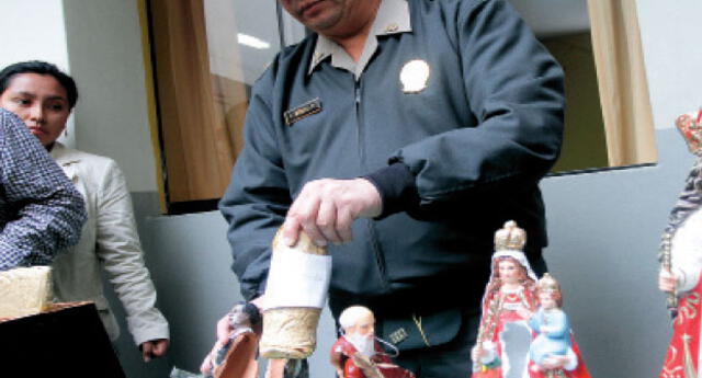En su poder tenían imágenes de San Martín, de San Judas, del Cristo Moreno y de la Virgen de Chapi. Dos de ellas fueron solidificadas con alcaloide de cocaína y una tercera tenía un paquete de la misma sustancia en su base. Durante el regisro domiciliario del segundo de los nombrados también se halló un paquete con droga.