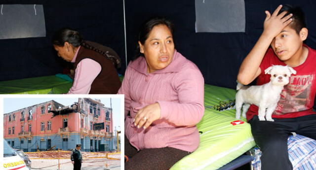 Pese a que se instalaron carpas en las inmediaciones de la Plaza Dos de Mayo, la mayoría de damnificados prefirió permanecer en medio del monumento histórico.