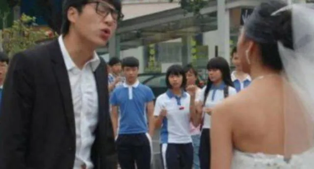 Un insólito hecho tuvo lugar en la ciudad de Shenzen, China, donde una pareja de novios se convirtió en la sensación del momento durante una sesión de fotos.Era lunes por la tarde y todo trascurría de lo más normal -salvo porque era el día de la boda- hasta que llegó la novia.Luciendo un hermoso vestido, la joven se presentó ante su futuro esposo pero, lejos de verse maravillado con la visión, el joven se llevó una desagradable sorpresa.Su novia había decidio poner a prueba el amor que el joven decía sentir por ella y lo hizo de una forma poco peculiar.Ella se presentó maquillada de anciana, pues tenía en mente saber si su novio continuaría amándola al cumplir 70 años con arrugas y canas por doquier.La mujer esperaba un abrazo y un gesto romántico por parte de su prometido, pero todo salió mal.A l verla, el novio le reprochó el maquillaje y los intentos de su futura esposa por hacerle entrar en razón resultaron infructuosos.El joven se retiró del lugar dejando a su novia a la vista de los desconocidos transeúntes, vestida de novia y llorando a más no poder.