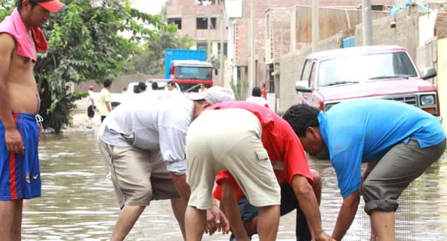 Unas 20 familias resultaron damnificadas luego que sus precarias viviendas se llenaran de barro por la rotura de una tubería instalada por Sedapal, que causó una inundación.