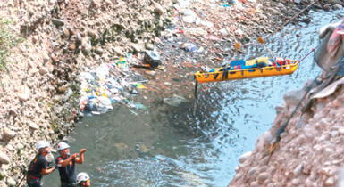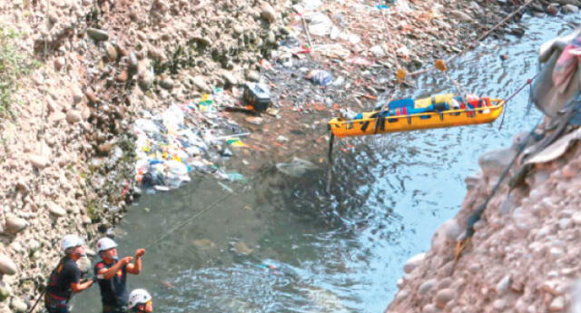 Casi dos horas, personal de la Policía Nacional batalló para rescatar a un joven adictó a las drogas que se precipitó desde un abismo de 30 metros al río Rímac, en el Cercado de Lima.