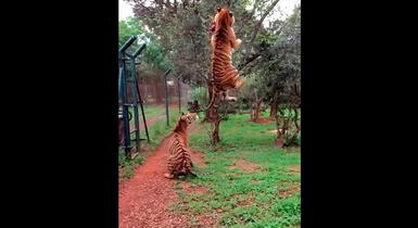 El vídeo que muestra el salto de un tigre bengala durante un safari en Sudáfrica se ha convertido en uno de más vistos en el portal de YouTube.