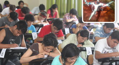 Gracias a imágenes captadas por un dron, la Universidad Nacional Mayor de San Marcos (UNMSM) vigiló a detalle la seguridad y el desarrollo del segundo día de exámenes de admisión.Ayer, unos 12.221 jóvenes intentaron alcanzar una vacante en las carreras de humanidades, ciencias sociales y económicas.“El dron nos permite ver el flujo de postulantes y profesores en todo el campus y grabar a todos aquellos que participan en el examen para evitar cualquier eventualidad”, informó el rector Pedro Cotillo.Agregó que otra de las medidas para reforzar la seguridad fue la instalación de un arco eléctrico que detecta metales y objetos electrónicos . “Ayer detectamos a algunos postulantes que introdujeron celulares y logramos intervenir a un suplantador”, refirió la autoridad universitaria.El examen empezó a las 10:00 am y terminó a la 1:00 pm, refirió Cotillo.En tanto, los resultos se difundieron anoche en la página web de la UNMSM y en las próximas horas se presentarán a los primeros lugares.El total de postulantes en los dos días fue 29.604, cifra récord de personas que pugnan por conseguir una de las 4.789 vacantes en 65 carreras profesionales.
