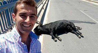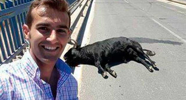 Torero Sergio Blasco se hace selfie con toro muerto en carretera