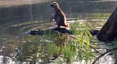 Estados Unidos: mira cómo mapache pasea sobre un cocodrilo