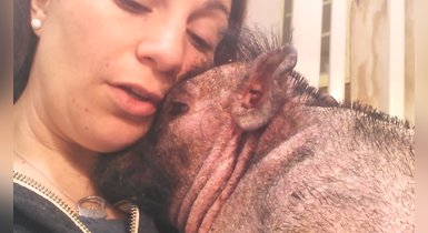 La sensibilidad en su máxima expresión.Conoce aBentley el cerdito ciegoque se asusta al escuchar sonidos altos. Su dueña le canta una tierna canción para consolarlo mientras está en el veterinario.