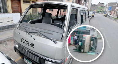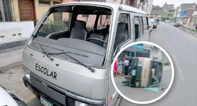 Tras el choque, la combi quedó de costado en medio de la pista y los escolares de cinco a ocho años fueron rescatados por transeúntes.
