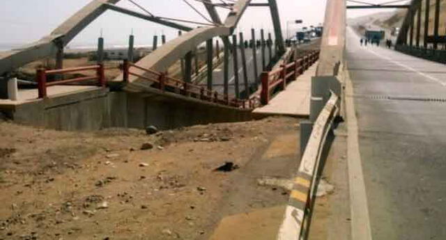 Se vino abajo. El puente Hawái, ubicado cerca del kilómetro 175 de la Panamericana Sur, que une Cañete y Chincha, colapsó luego de que un pesado tráiler de placa BID-938 chocara con una de sus barandas.