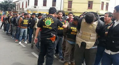 María AybarLos agentes de la División de Robos de la Dirincri capturaron en la mañana de ayer a 20 integrantes de una organización criminal que intimidaban a los moradores para expropiarlos ilegalmente de sus terrenos, venderlos y luego extorsionar a los nuevos propietarios.Diez de los sujetos fueron sorprendidos por las autoridades en un predio de la zona conocida como Quebrada El Algarrobo, ubicado al costado de la Urb. Mirasol de Huampaní.En tanto, otro grupo de hombres se encontraba en la parte alta del cerro en el lugar conocido como Los Andes de Huampaní.Entre los detenidos se encuentran los cabecillas Juan Carlos Almidón Luna y Jair Pedro Carmen Aguilar, quienes registran antecedentes por secuestro, robo y hurto agravado.ARMADOSLos detectives, al realizar un registro en el lugar, en una de las casas hallaron una pistola ametralladora tipo MGP con dos cacerinas abastecidas. También dos pistolas, un revólver, cuchillos, dos cacerinas de pistola, una bomba lacrimógena, 45 municiones para pistola, chalecos de seguridad, pasamontañas y envoltorios de droga.