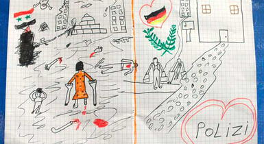 La Policía Federal en Baviera, Alemania, recibió como regalo de parte de un niño de Siria, refugiado en ese país, un dibujo hecho a manos y con crayones.
